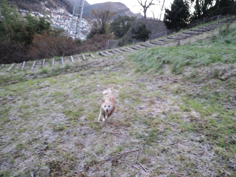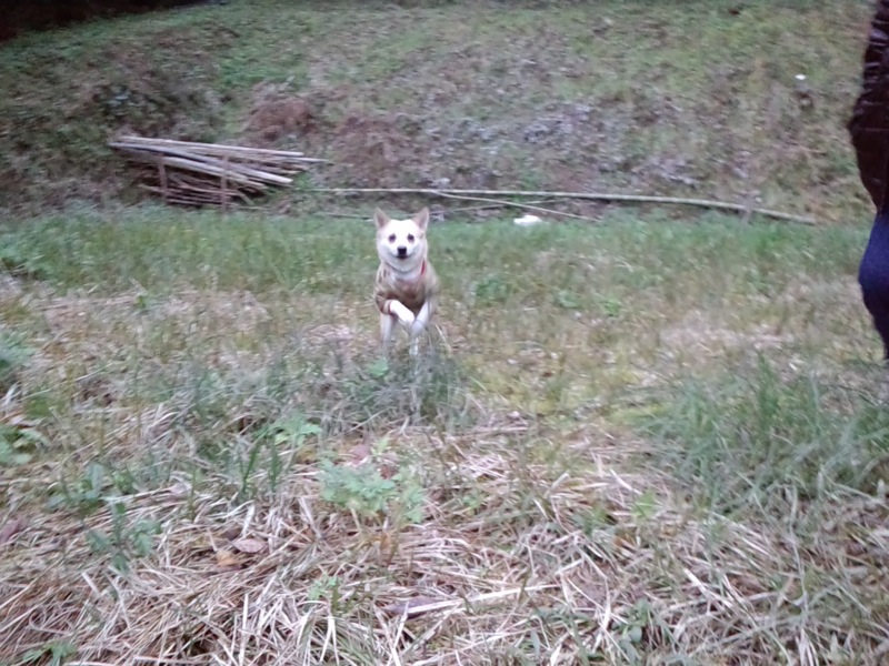昨日、おかあちゃんが下の竹林の更に下の方まで下りてったと思ったら、そこにも広い空き地があったってことで、今日もそこで結構走って来てたんですよ。