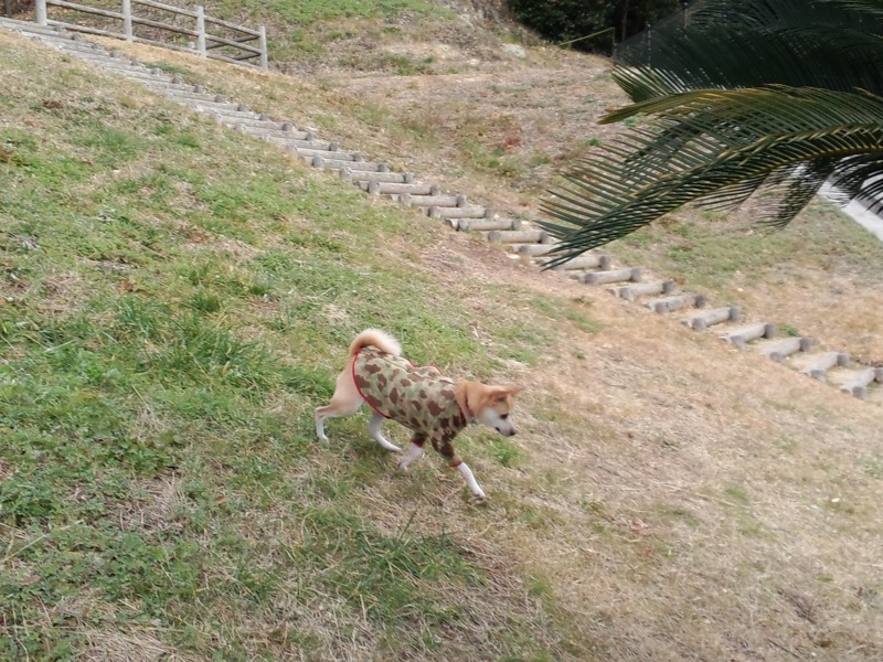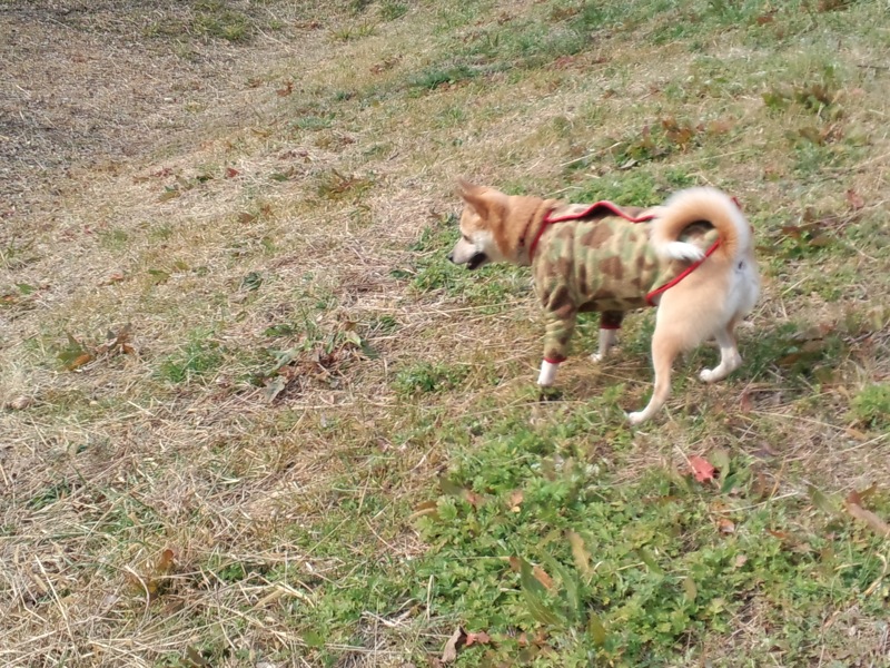 朝んぽではいつも、うちから30分程のとこにある公園まで行ってる訳ですが、夕方の散歩は近くの団地をぐるっと一周するだけです。