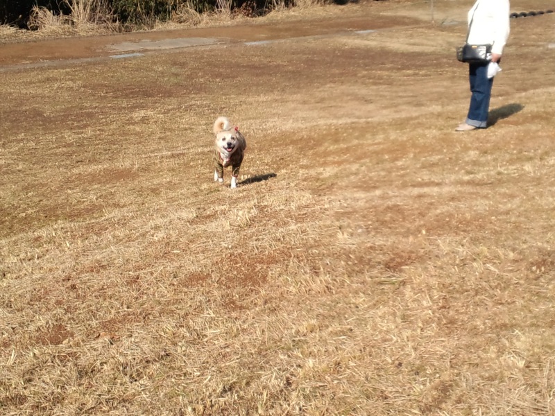 ここはハタ揚げ大会があるところで、その名もハタ揚げ広場と言う、広い芝生広場があるんですが、今日はカップルがキャッチボールしてるし、親子連れも多いので、ロングリードがないとここでは遊ばせられない。