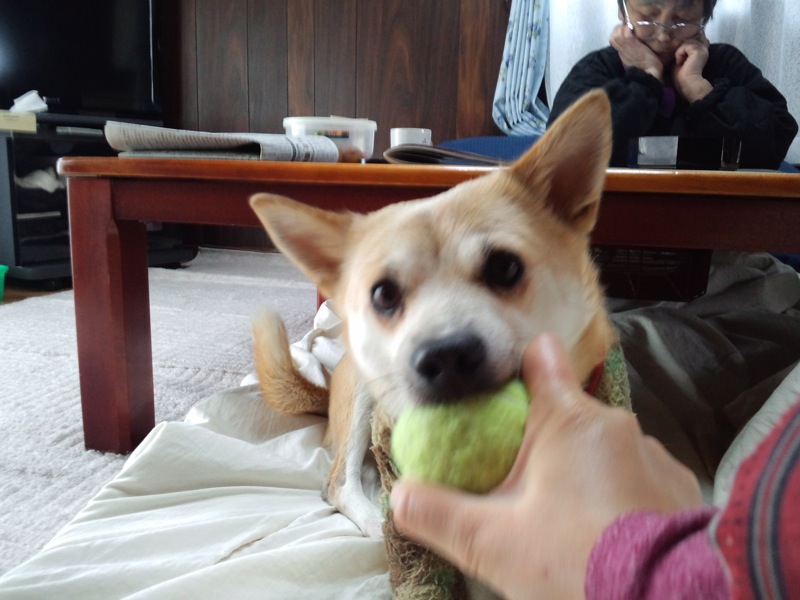 玄関開けたら、思いっきり吠えてました。