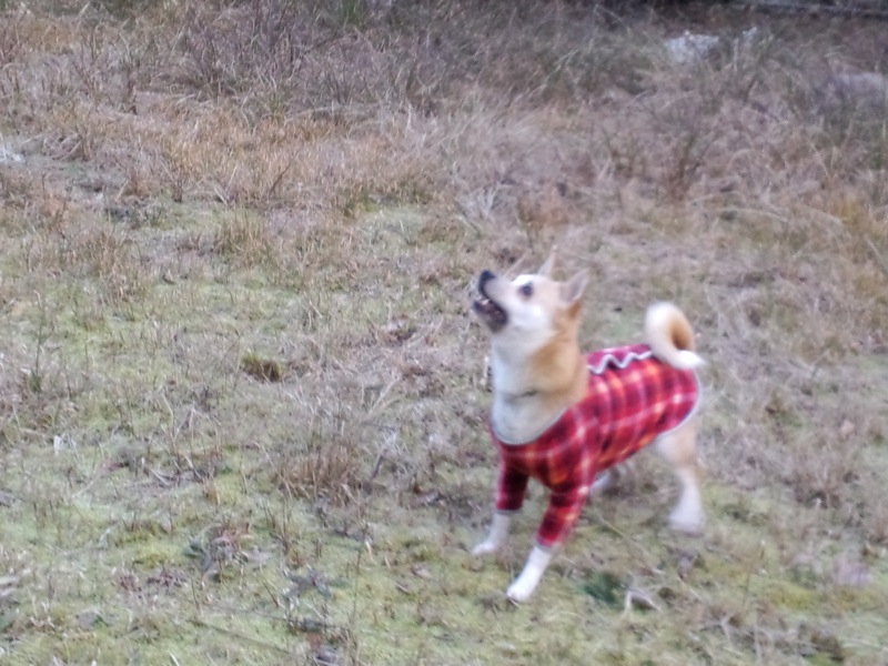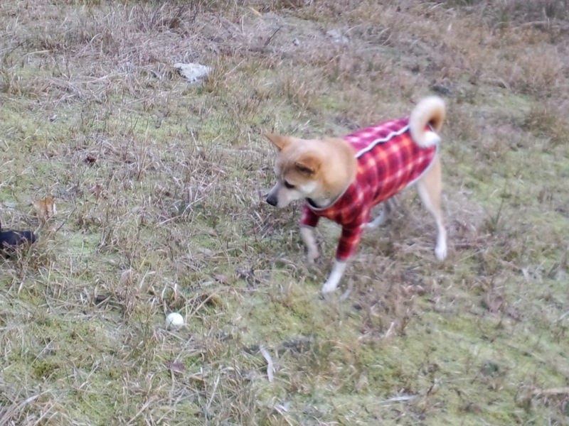 週末の、おかあちゃんも一緒の朝んぽでは走り回れることが解っているので、はっちゃけまくり。