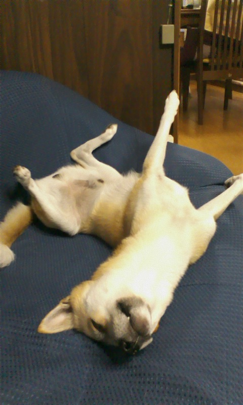 ぱっかん状態で寝てて、ぐぐぐーっと伸びをしたかと思ったら、腕はぴーんと伸ばしたまま、また寝たのでした…。
