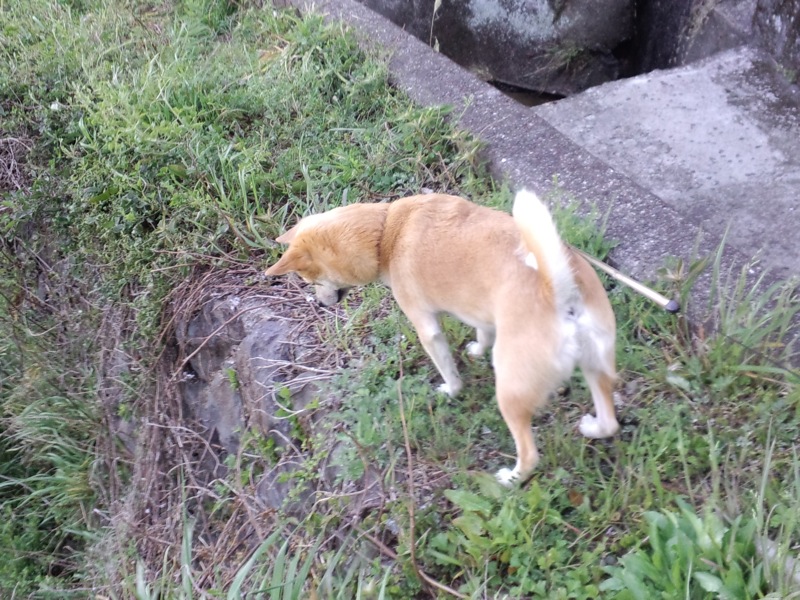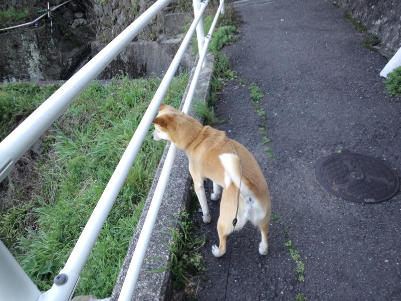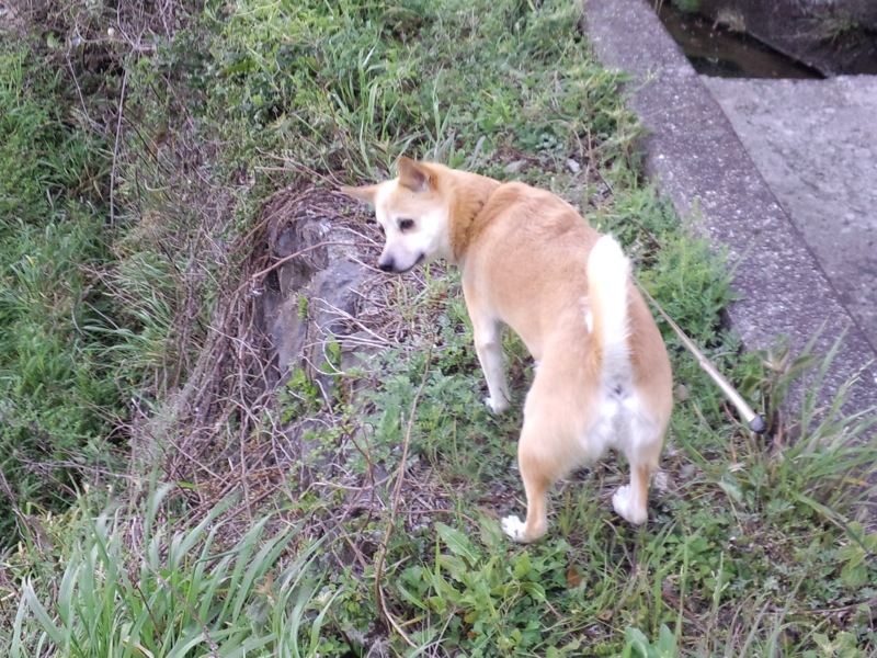 そんな朝んぽの帰り道。いつもの空き地に鶏を探すろろた。
