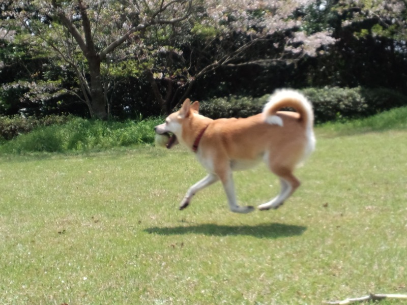 暖かかったからなのか、やっぱり前日の疲れがまだ残ってたのか、何度か投げたら、ボールを咥えたまま、ひとりでさっさと帰ろうとしてましたよ…。