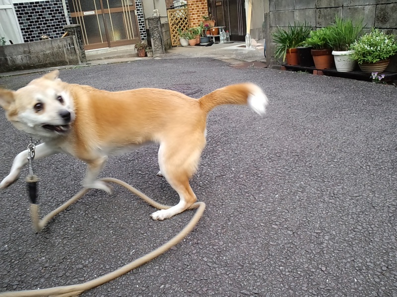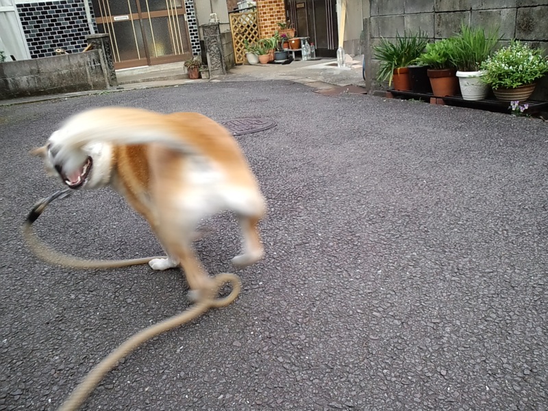 起き上がったらすぐ、またテンション高く走ってたんで、怪我はないようですが。