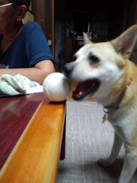 遊んで欲しいろろたさん、ボールを持ってきました。