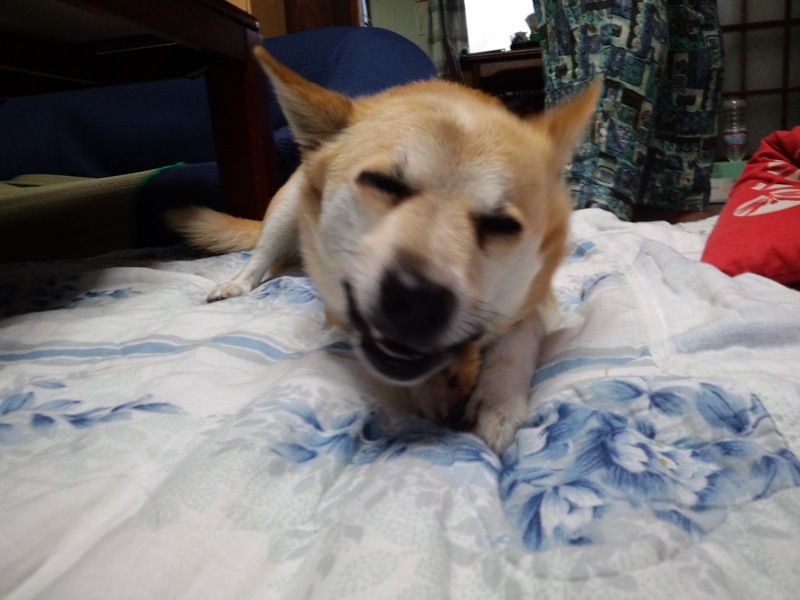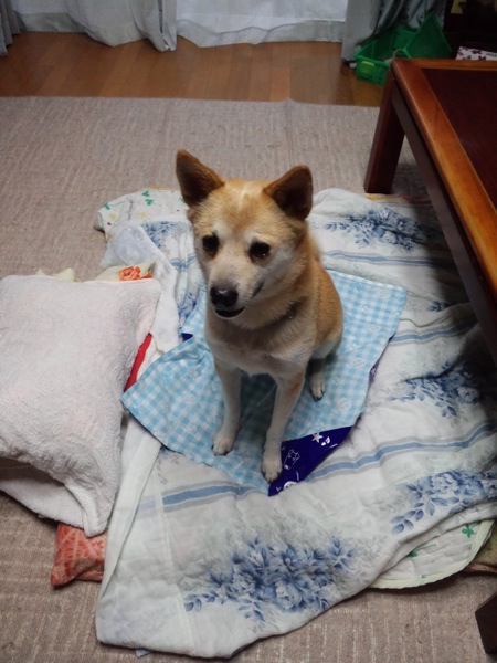 昨夜、おかあちゃんが蚊取り線香を点けて寝よったんですが、夜中トイレに起きた時、戸の隙間から漏れてんのか、えらく蚊取り線香の匂いがするんで煙くないのかと思ってたら、今朝、散歩から帰ってろろたの足を拭きつつ、頭に鼻を突っ込んでみたところ、匂いが染み付いてました…。(-_-;)