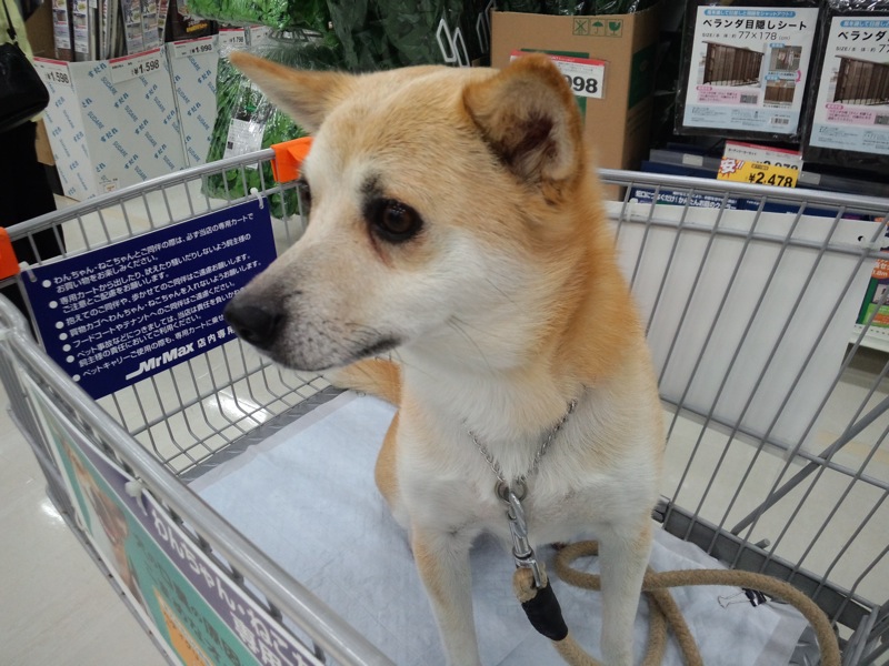 ここでは自分も下りていいって覚えたみたい。その割に、店の入口まで行くと、カートに乗らなんことを思い出して、逃げをうつんですが。(^ ^;)