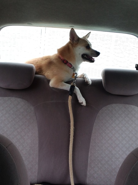 助手席前のダッシュボードの上に、超小型犬が乗ってたんですが。