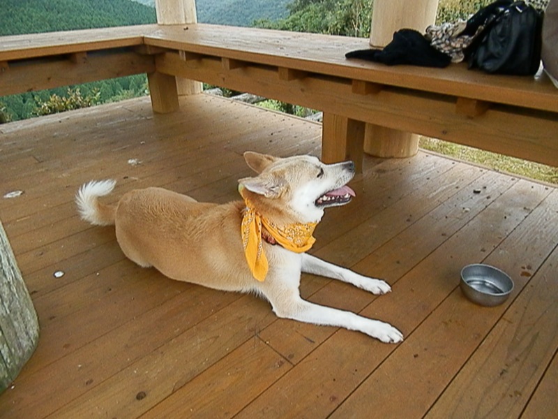 陽は時々射す程度とは言え、走ればやっぱ暑いんで、東屋でクールダウンして。