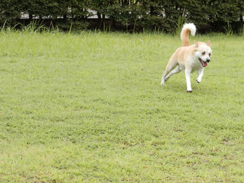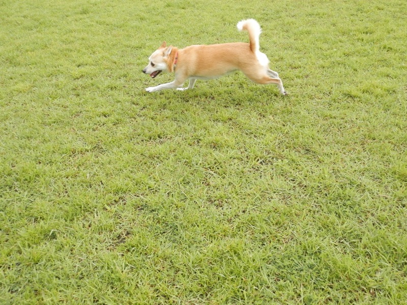 いつもの芝生広場に比べたら大分狭いんですが、それでもろろたは大喜びでバカ走り。(^ ^)