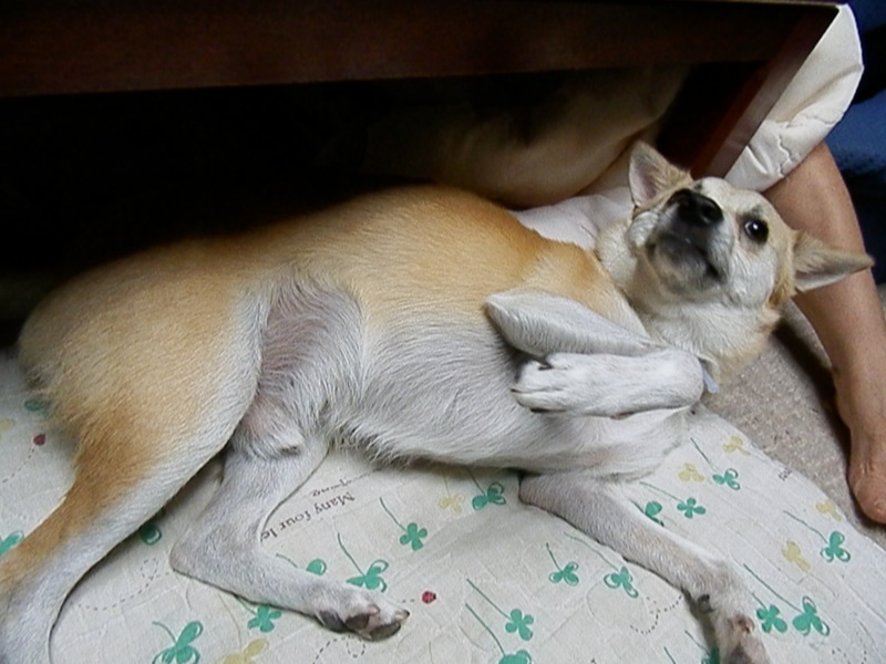本犬もさすがにそれは暑かったらしく、すぐに這い出て、布団の上でおかあちゃんにくっついて寝てたそうです。(^ ^)