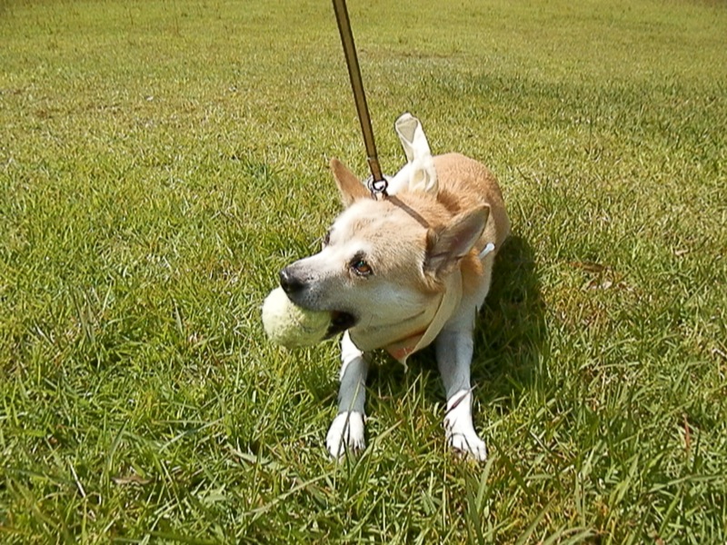 リード着けたまんまでボール遊びしてたけど、これじゃ走れないしなぁ。