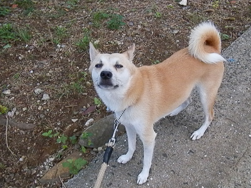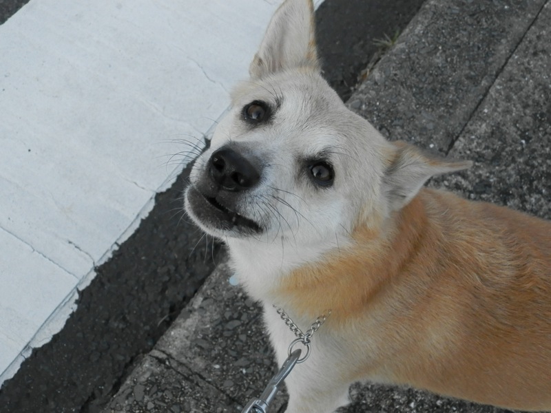 朝んぽと言えば、1日置きのコースの片方でコンビニの前を通るんですが、歩道からすぐのとこに食べこぼしみたいなのが落ちてて。くんくんしながら近づいて行くろろたに「ダメよ」と言いながらリードを軽く引いたんですが、ぱくっと。