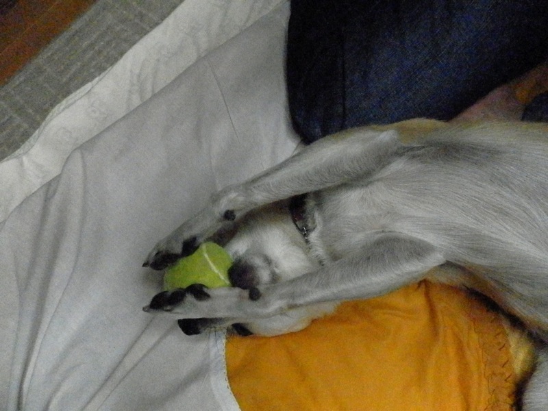 いつもは「もういい加減にして;」と思うくらい、しつこく「投げれ」とボールを持ってくるコが、今日はねえちゃんの横でやけに大人しく一人遊びしてるなーと思ったら。