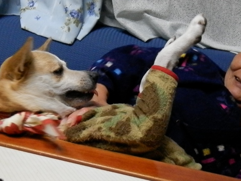 帰って来たら、ねえちゃんとおかあちゃんに飛びつきまくり。ねえちゃんがトイレに行って戻って来ただけでも大喜びですよ。(^_^;)