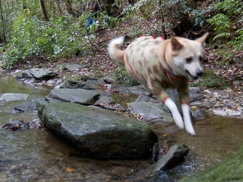 今日も沢を渡って行くねえちゃんの後を追っては来たものの、華麗なジャンプにて、決して足を濡らすことはありませんでした。(^ ^;)