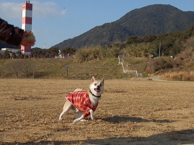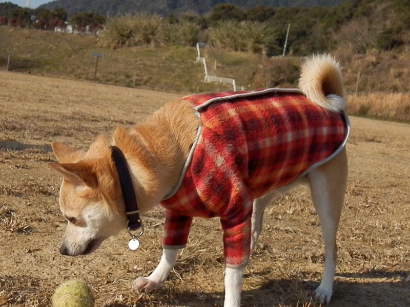 ぽとんと落としたボールを蹴ってやると、持って帰って来ないで遠くで置いちゃうんですけど、投げてやると、手元にとは言わないまでも、近くまで持って帰って来る。