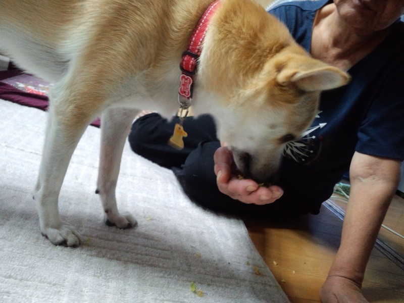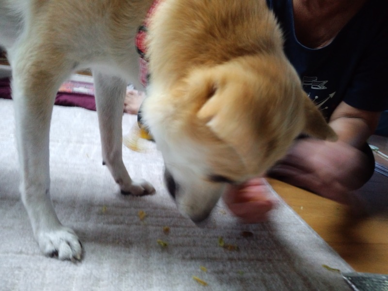 途中でフードも変えたしなぁと思って、今日はドライ野菜は混ぜずにやったら、綺麗に食べましたよ。