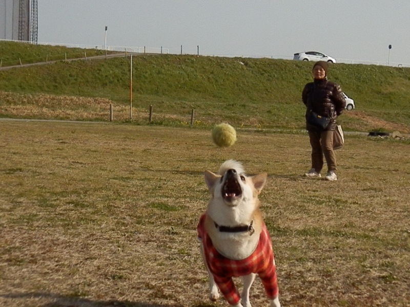 いつものように襖にぼっすんぼっすん突っ込みながらボール遊びをしていたら、ピンポーンと来訪者。