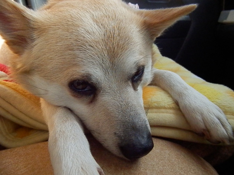 助手席で伸びてるところにカメラ向けたら、こ〜んな迷惑そうな顔されました;( ノД`)シクシク…