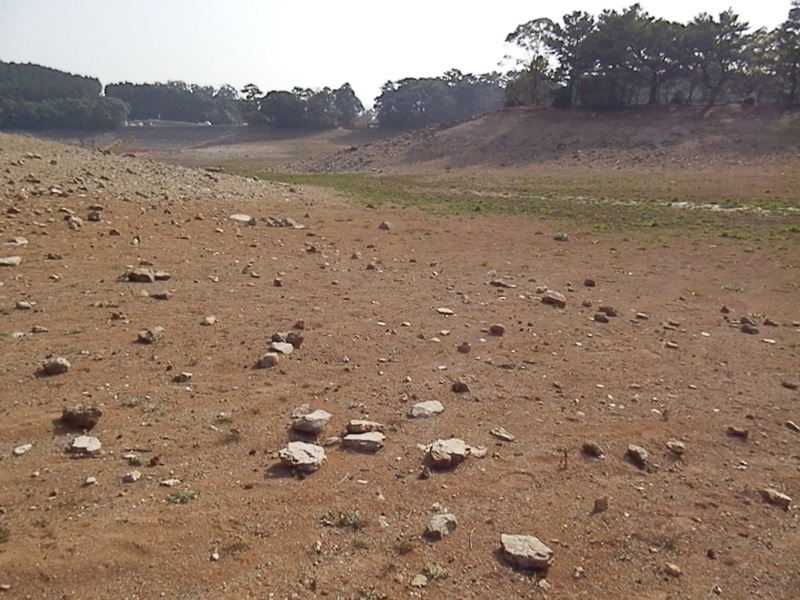 何やら工事をしていたようなので、それで水を抜いてたのかな。草が生えて青々としてたんで、結構前からやってるっぽい?知らなかったんで、びっくりした;