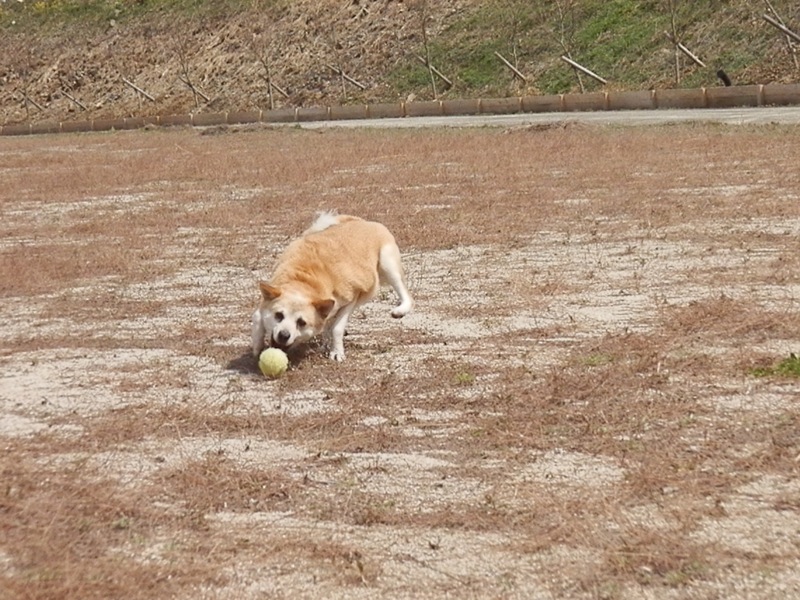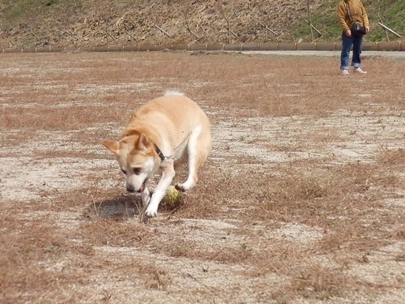 枯れた長めの草に足を取られるのか、最初の内はちょっとノらない感じだったけど、徐々に調子が出てきて、いつものようにハヒハヒになるまで走りまくってました♪