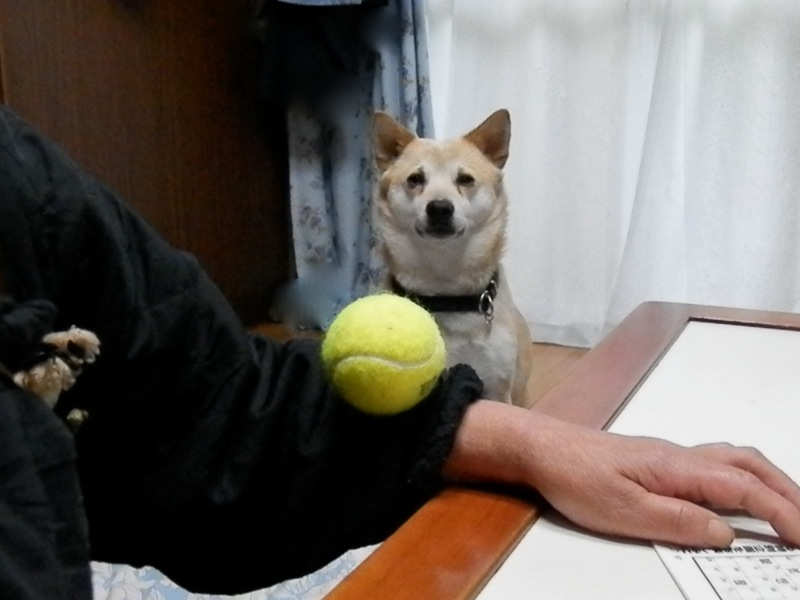 朝、まんまを食べた後、ボールを持って来たと思ったら、