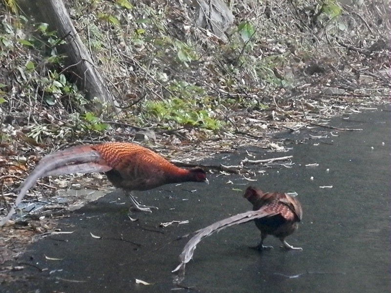 目の前にいきなり、ヤマドリが飛び出してきました。Σ(・ω・ノ)ノ! びっくりっ!