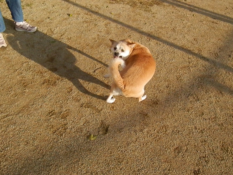ところで、↑ こんな風に自分の尻尾追いかけんのって、ストレスって言われること多いけど…。