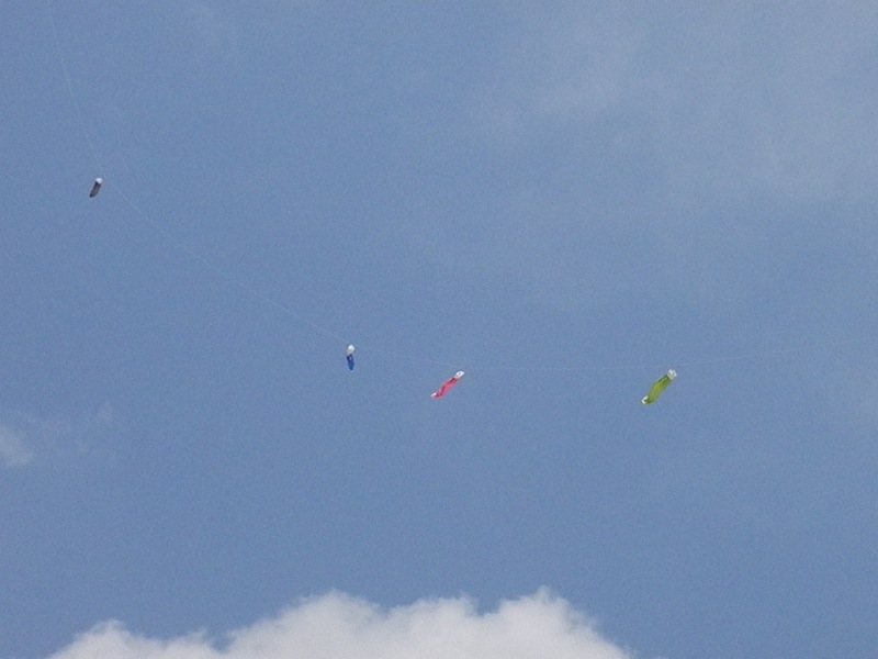 川の側に腰掛けたおじさんがハタ(凧)に鯉のぼり繋いで揚げてました。(≧∇≦)b イイネ!!