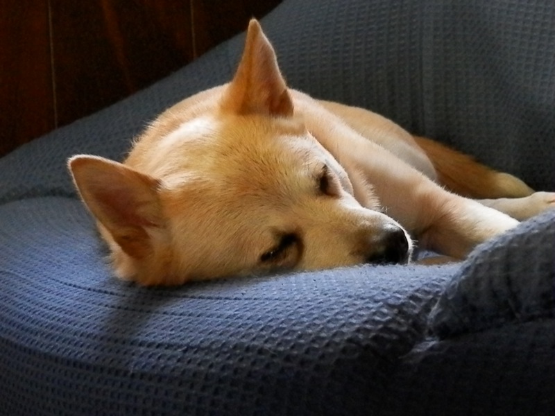 平日は散歩の合図になってると言う、座敷の引き戸を開けても起きない。