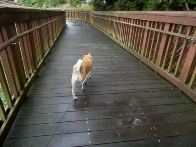 けど、ぼっちゃんは遊びたそうだけども、さすがに雨上がったばっかりじゃ、泥だらけになるのは目に見えてるんで我慢して頂いて、散歩だけすることに。