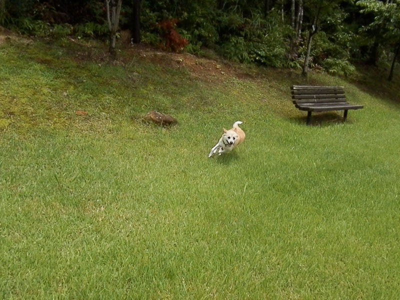 水辺の広場に到着した途端、いきなり狂ったように走り出すぼっちゃま。