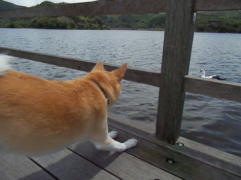 白鳥とは違って獲物サイズだけど、水があるので近づけないろろたがわんわん吠えてました。(^ ^)