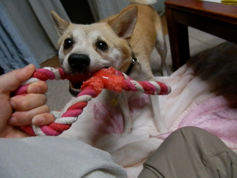 テニスボール・ロープ・野球ボールと、次々と出してきてねえちゃんに押し付けておりました。(^_^;)