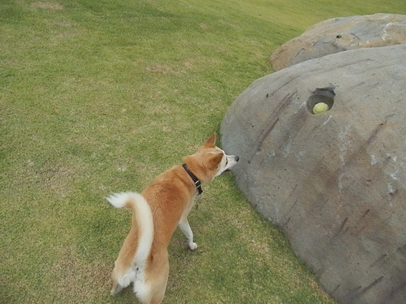 ねえちゃんにボールを岩の窪みに隠されてみたりして遊びましたよん♪