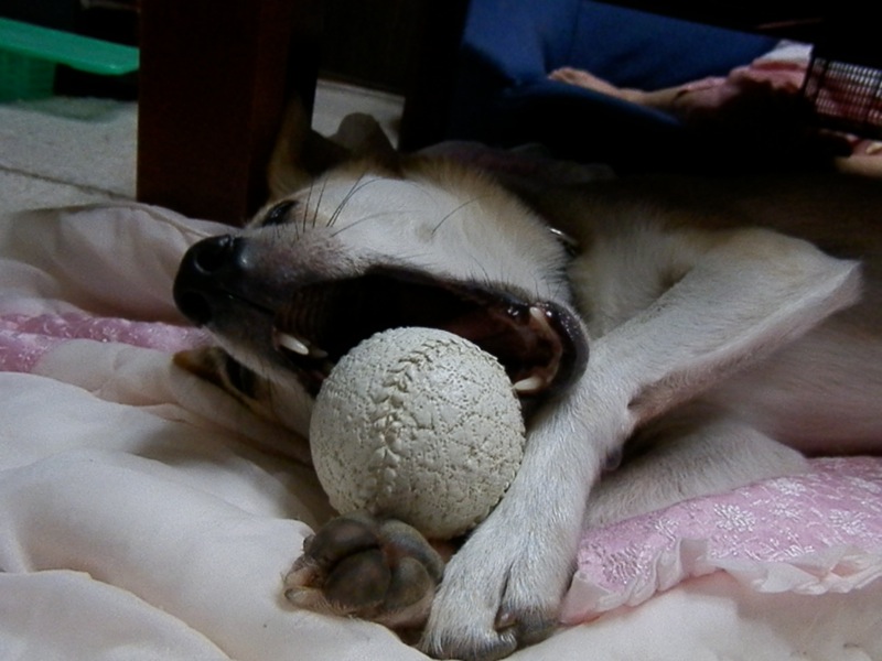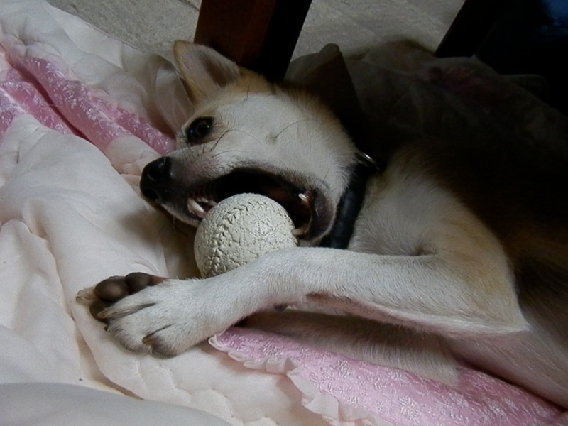 今日なんて、散歩の途中でコンビニに寄れないコースだったんで、シャワーの後でちょろっとコンビニ行って帰ってきたら、あぐあぐあぐあぐ咬みまくり。