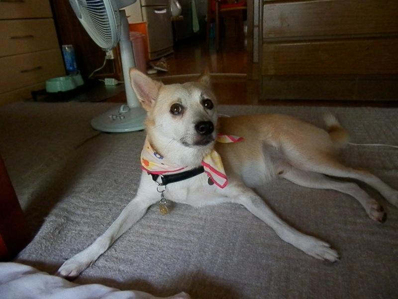 午後一にはどこかで爆竹らしき音がしたもんで、ねえちゃんの足の間に収まってちょっと寝てましたが、その後起きたらそこからまー寝ない。