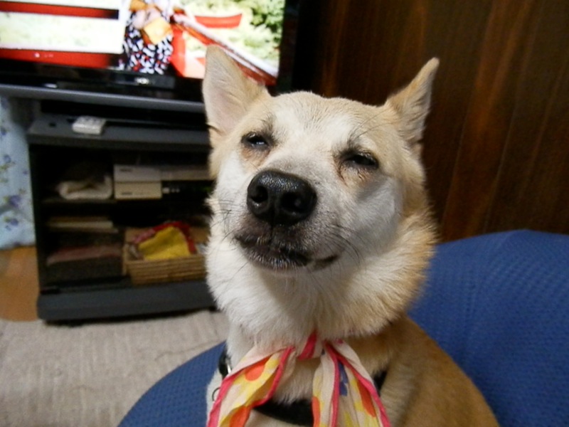 精霊流しが始まっちゃうと無理だからと、まだ暑いけど仕方が無いってことで散歩に出たものの、早いとこはもう出発してるもんでヒィヒィなって帰って来た上、うちの前辺りを精霊船が通る時にはねえちゃんに抱っこされてブッルブル;