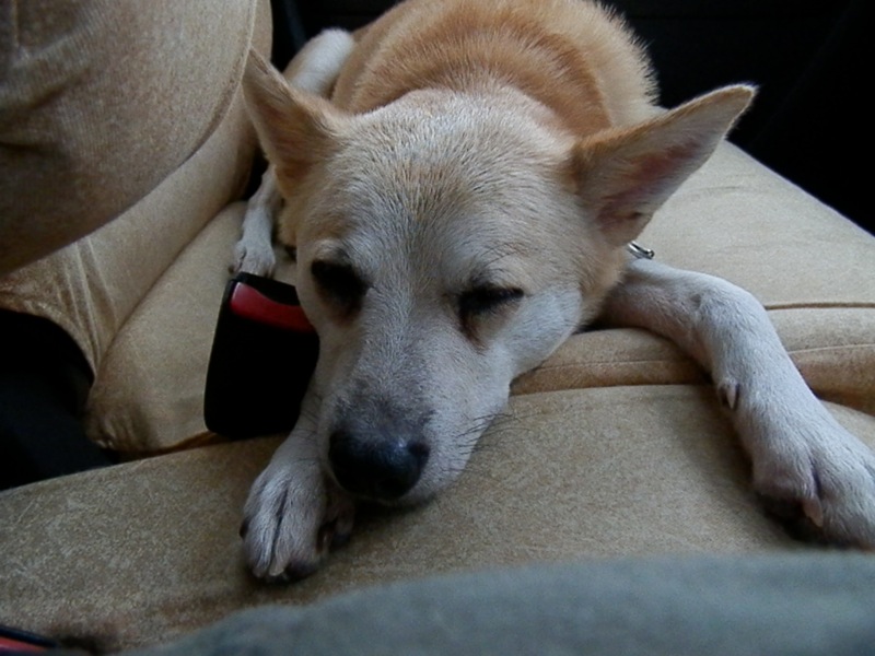 それにしても、ミスマに行った時。いつもはきゅーきゅー言って急かすのに、今日は一言も鳴かず、駐車場に車を停めてもろろった専用スペースにゆったり横たわったまま。