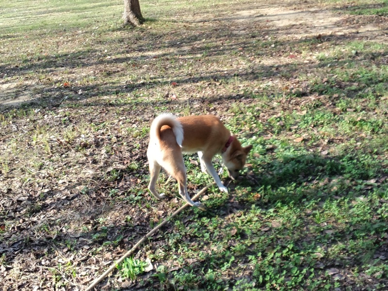 人気のない一角で遊ばせてやりましたが、いつものようなバカ走りはなく。