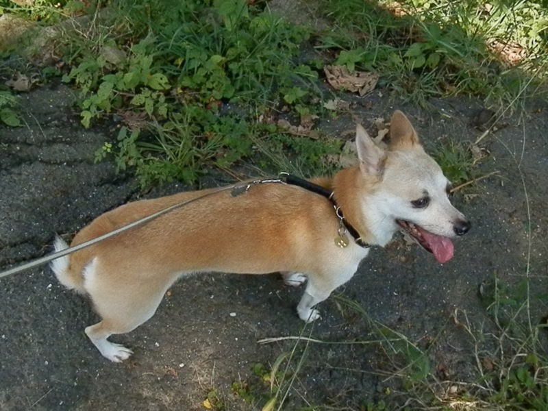 しかもかなり近い辺りでスズメ脅しの音が聞こえてきたもんで、ビビリまくりのおぼっちゃま。尻尾が完全に下がっております。