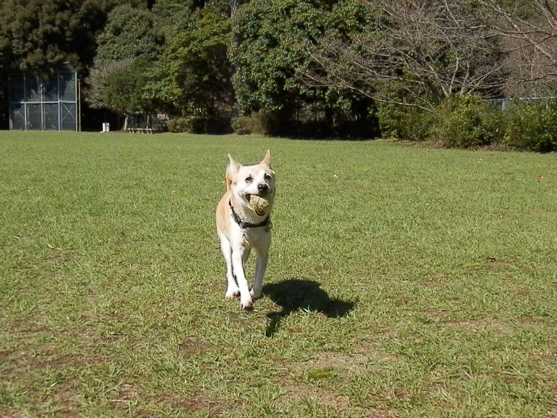 ノーコンおかあちゃんよりねえちゃんの方が遠くまで投げれるからか、最近ねえちゃんにばっかボールを持って来るもんで、拾って戻って来るところしか写真が撮れないよ…;