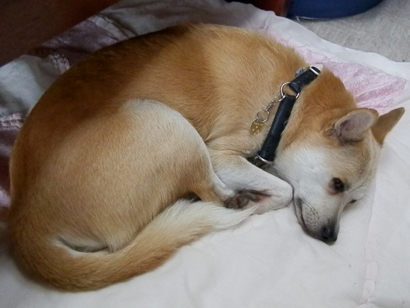この風の強い中…と思っていたら寒かったらしく、帰って来るなり、布団の中に潜り込んでました。