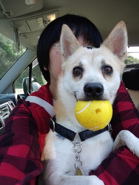 車に戻っても離さず、ボール咥えたまんまでございました。(^ ^)
