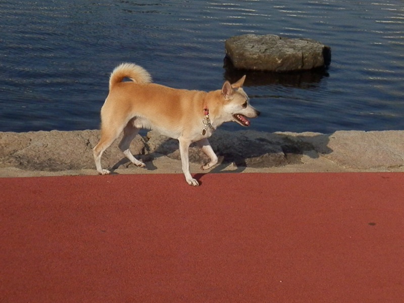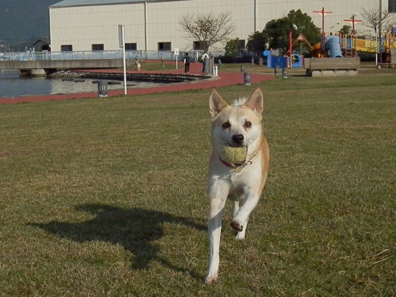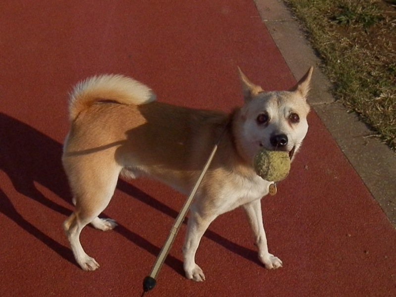 水を飲んでる間に今日はおかあちゃんがボールを隠したんだけど、いつも隠すのはねえちゃんなもんで、ねえちゃんのとこに探しに来るコ…。