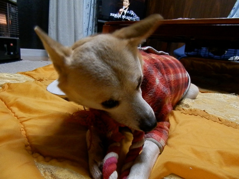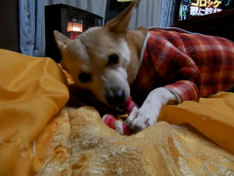 ………山間部だよねぇ、うち;よかったね、ろろたん。一昨日の内に服着といて。