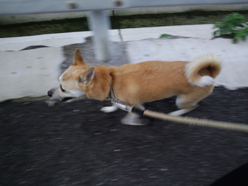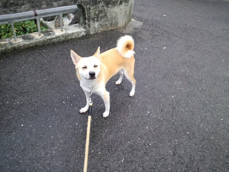 今朝も雨降ってないからと連れ出したものの、う●こを済ませたらもう帰りたい。