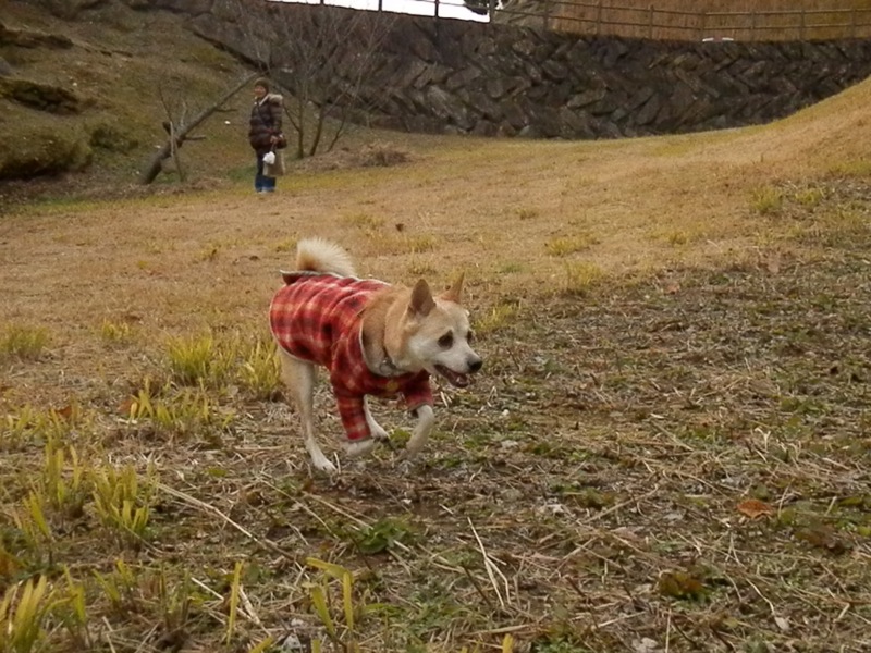 山の上は寒いんで、今日は琴海中央公園。前回、スズメ脅しにビビリまくってたんで、まだ怖がるようならもっと先まで行くか、桜並木を散歩するか、ってとこだったんだけど、大丈夫な様子。